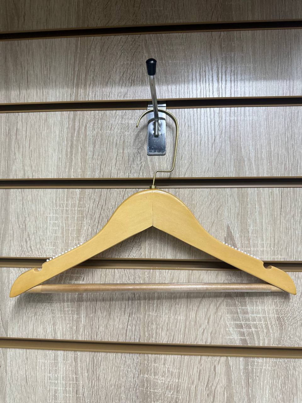 Вешалка деревянная детская с выемками для бретелей и силиконовыми накладками. Крючок поворотный. 30 см